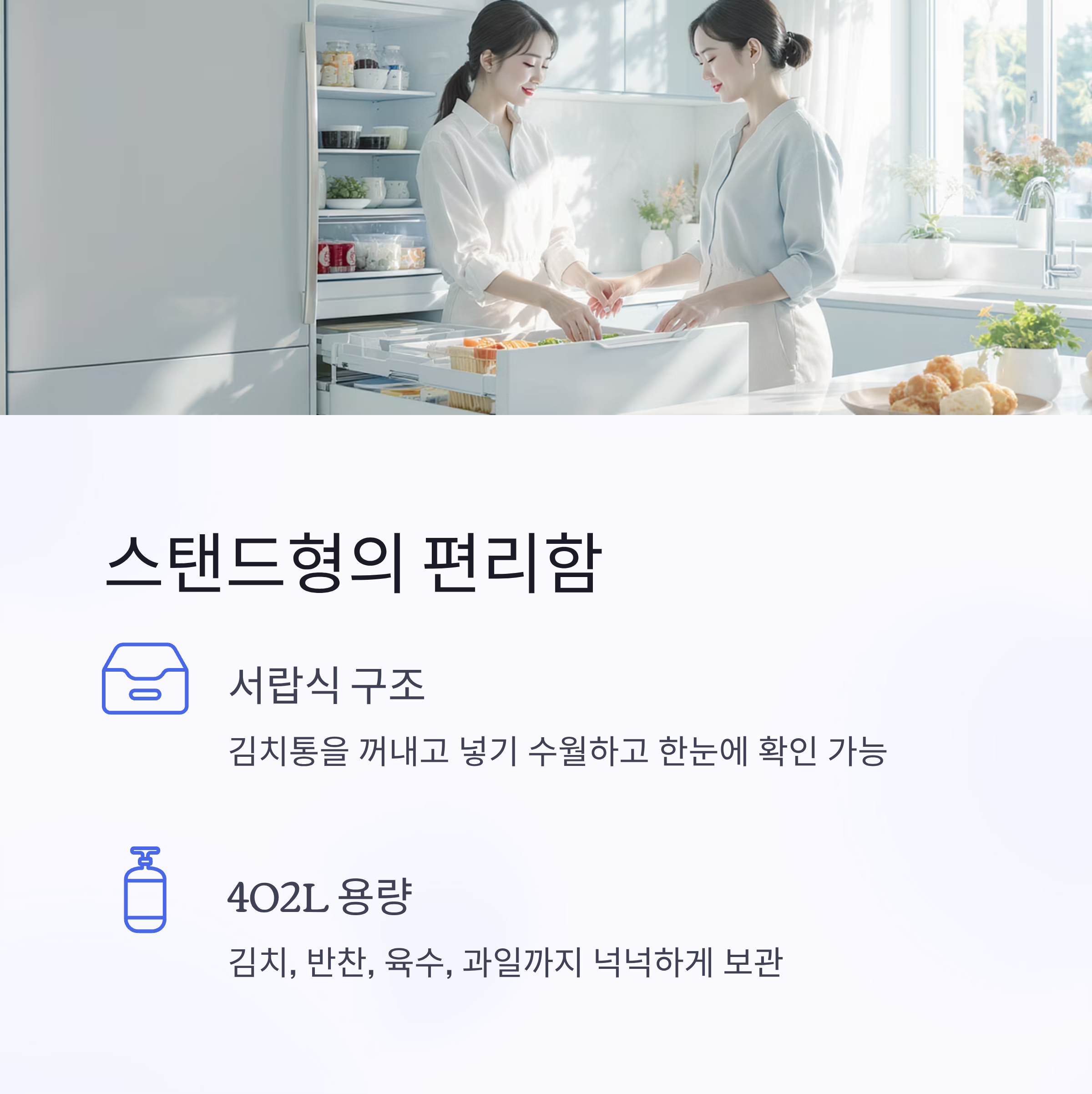 그리고 주부 입장에서 매번 허리 굽히지 않아도 된다는 점, 이게 생각보다 생활 만족도를 크게 올려주더라고요. 김치뿐 아니라 반찬과 과일까지 다양하게 보관할 수 있으니 사계절 내내 활용도가 높다는 것도 장점이에요.