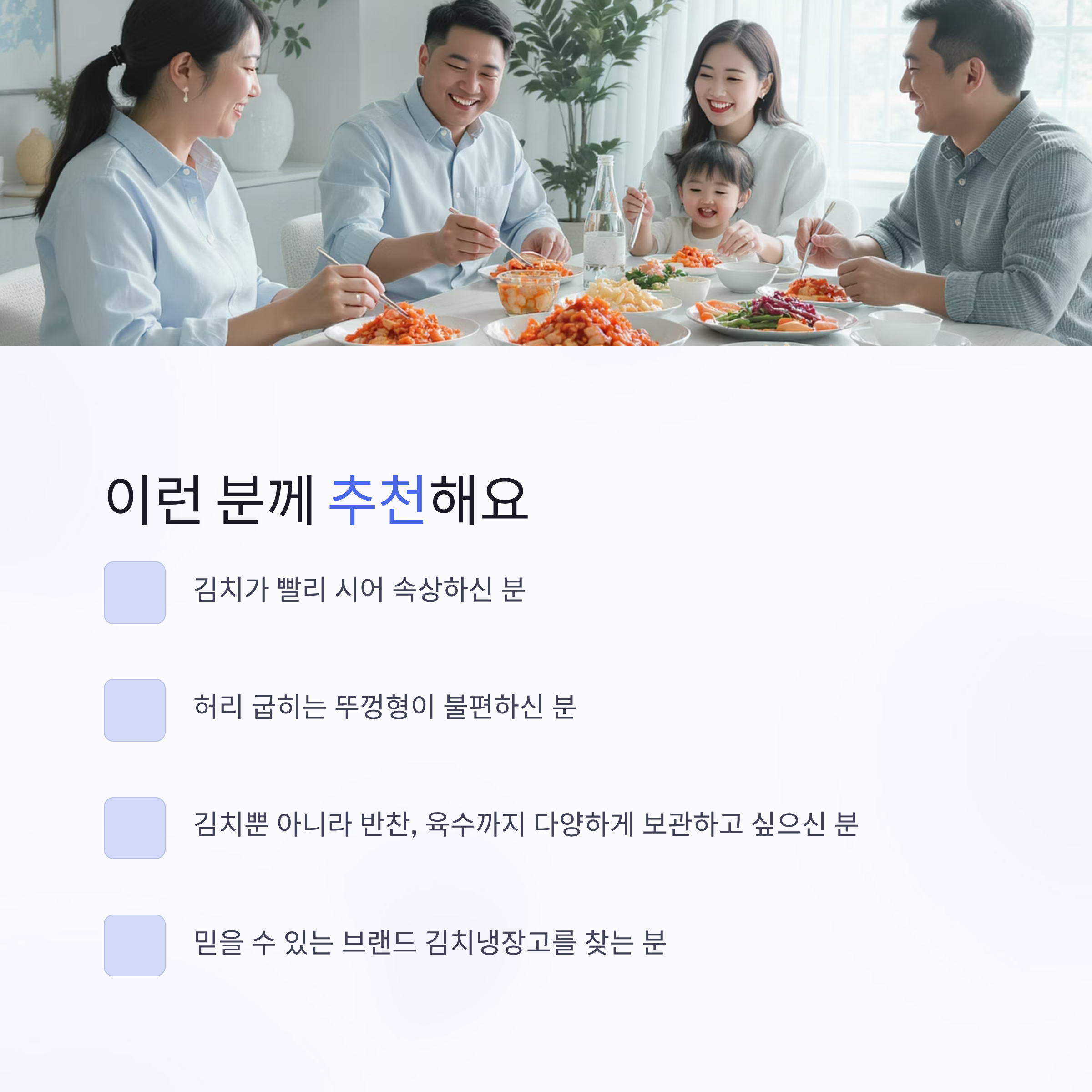 - 김치뿐 아니라 반찬, 육수까지 다양하게 보관하고 싶으신 분