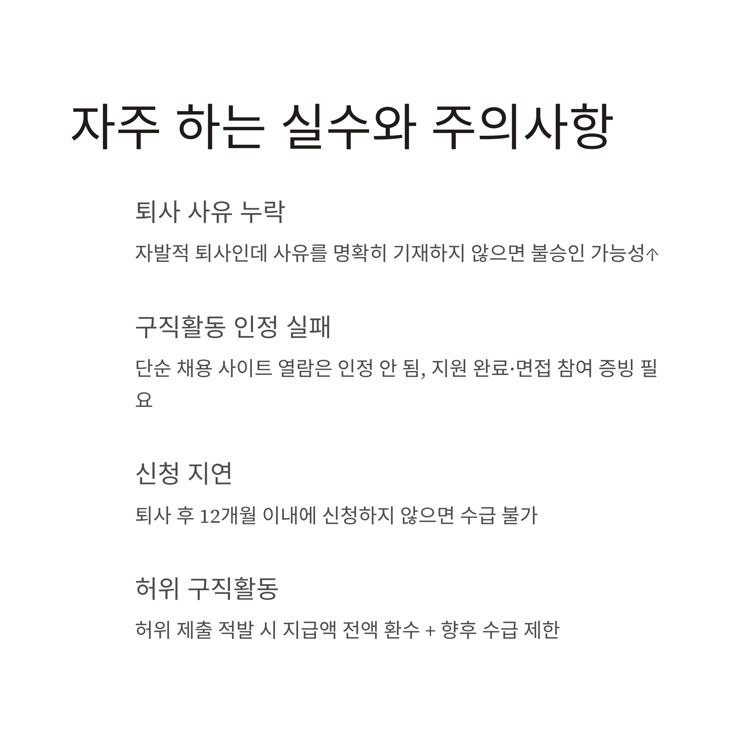 - 퇴사 후 12개월 이내에 신청하지 않으면 수급 불가