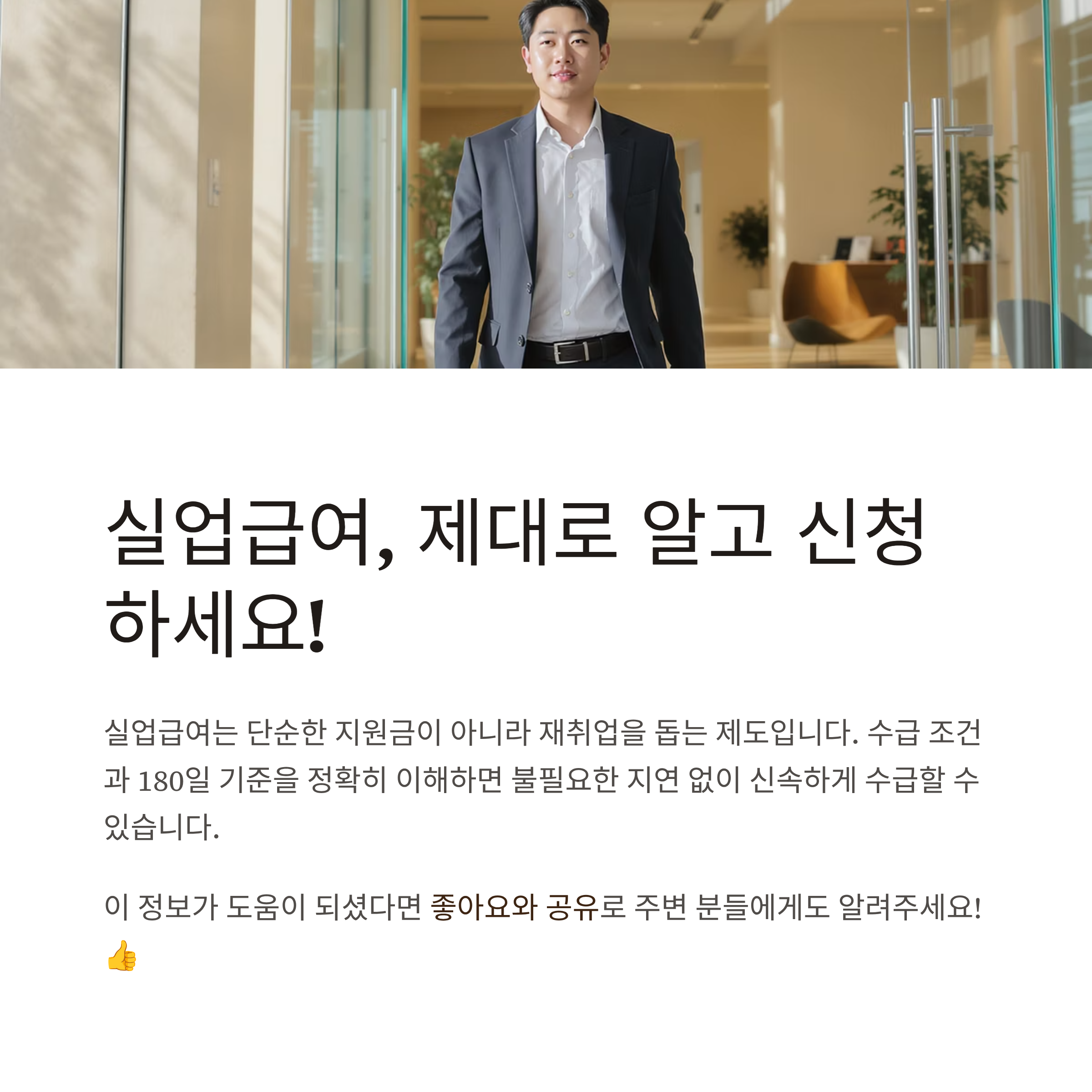 이번 글에서 정리한 수급 조건·180일 기준·신청 절차·주의사항을 숙지하면, 불필요한 지연 없이 신속하게 수급할 수 있습니다.
