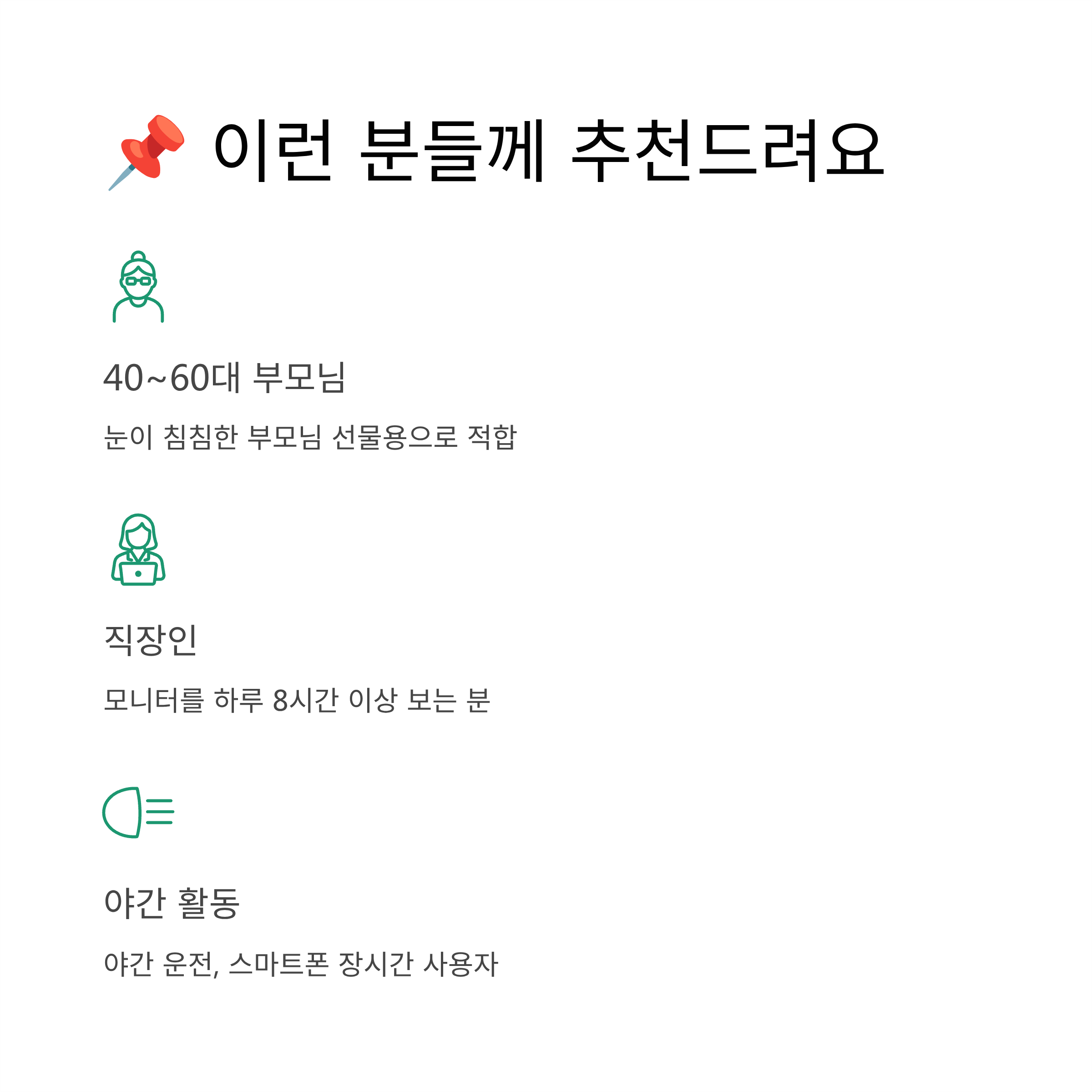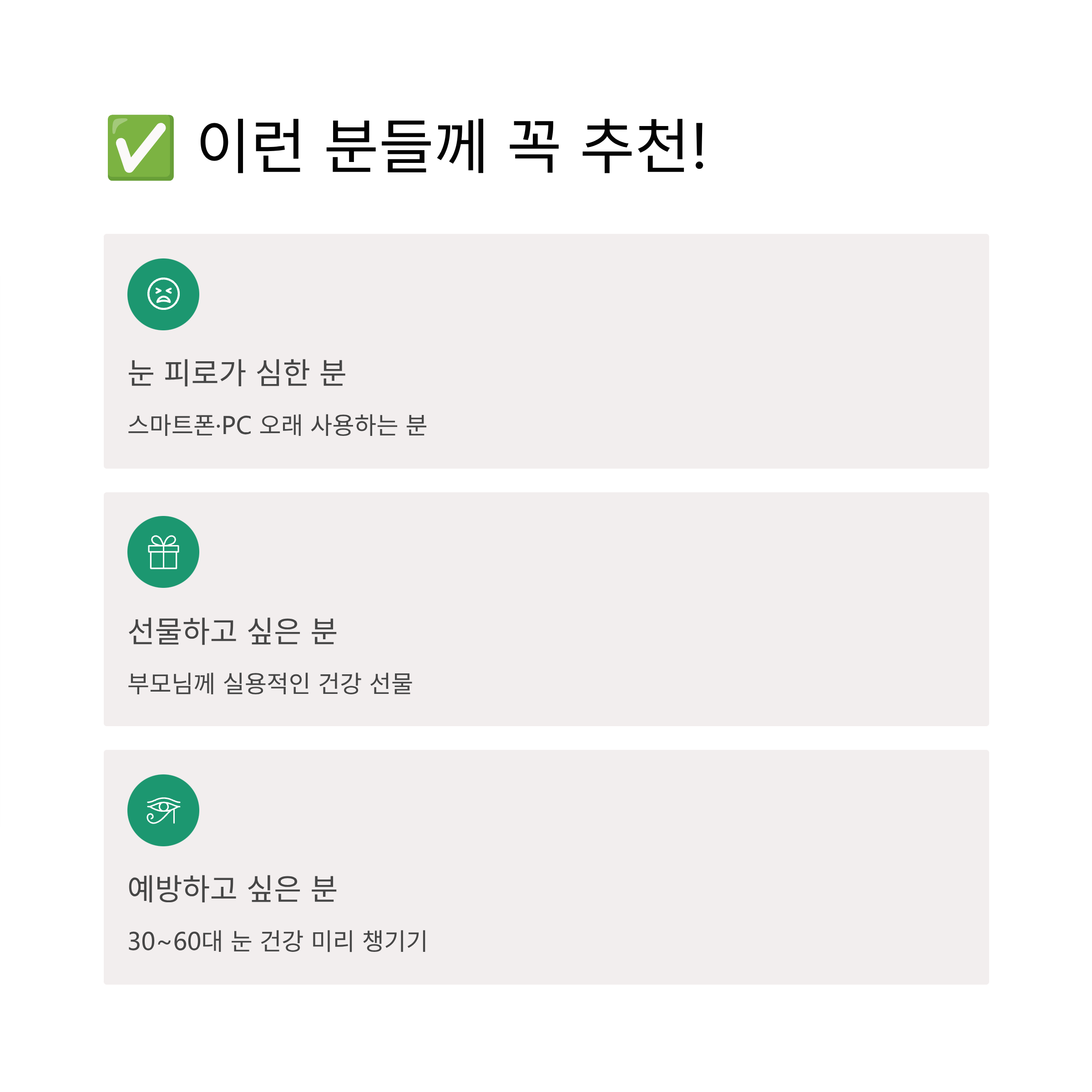 - 눈 건강을 미리미리 챙기고 싶은 30~60대 남녀