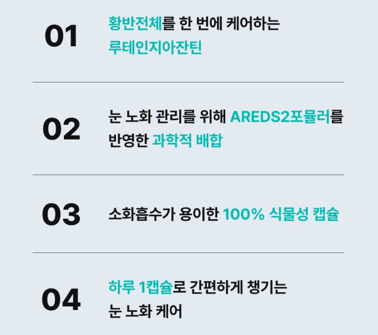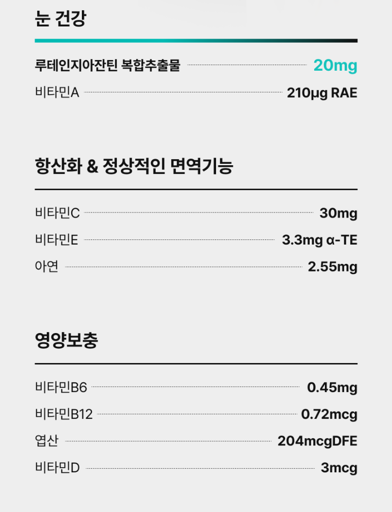 - 루테인+지아잔틴의 명확한 비율 공개 (16:4)