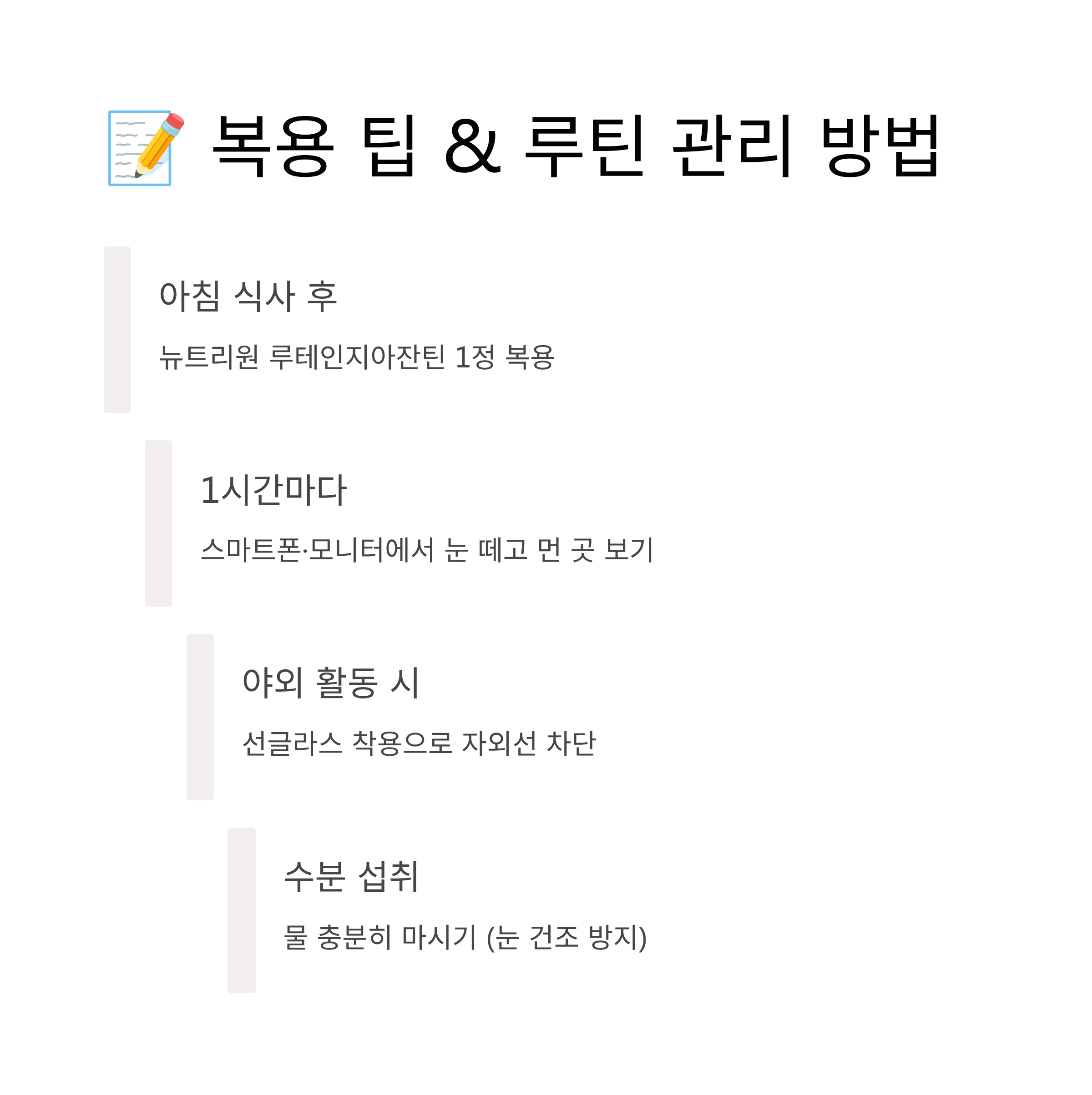 이런 습관과 함께 루테인 복용을 병행하면 효과가 훨씬 체감되기 쉬워요.