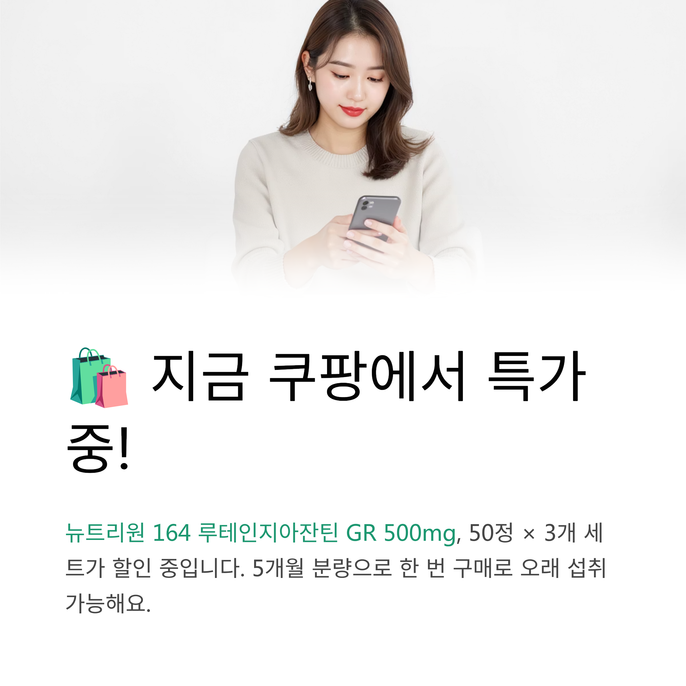 현재 쿠팡에서는 뉴트리원 164 루테인지아잔틴 GR 500mg, 50정 × 3개 세트가 할인 중입니다.
